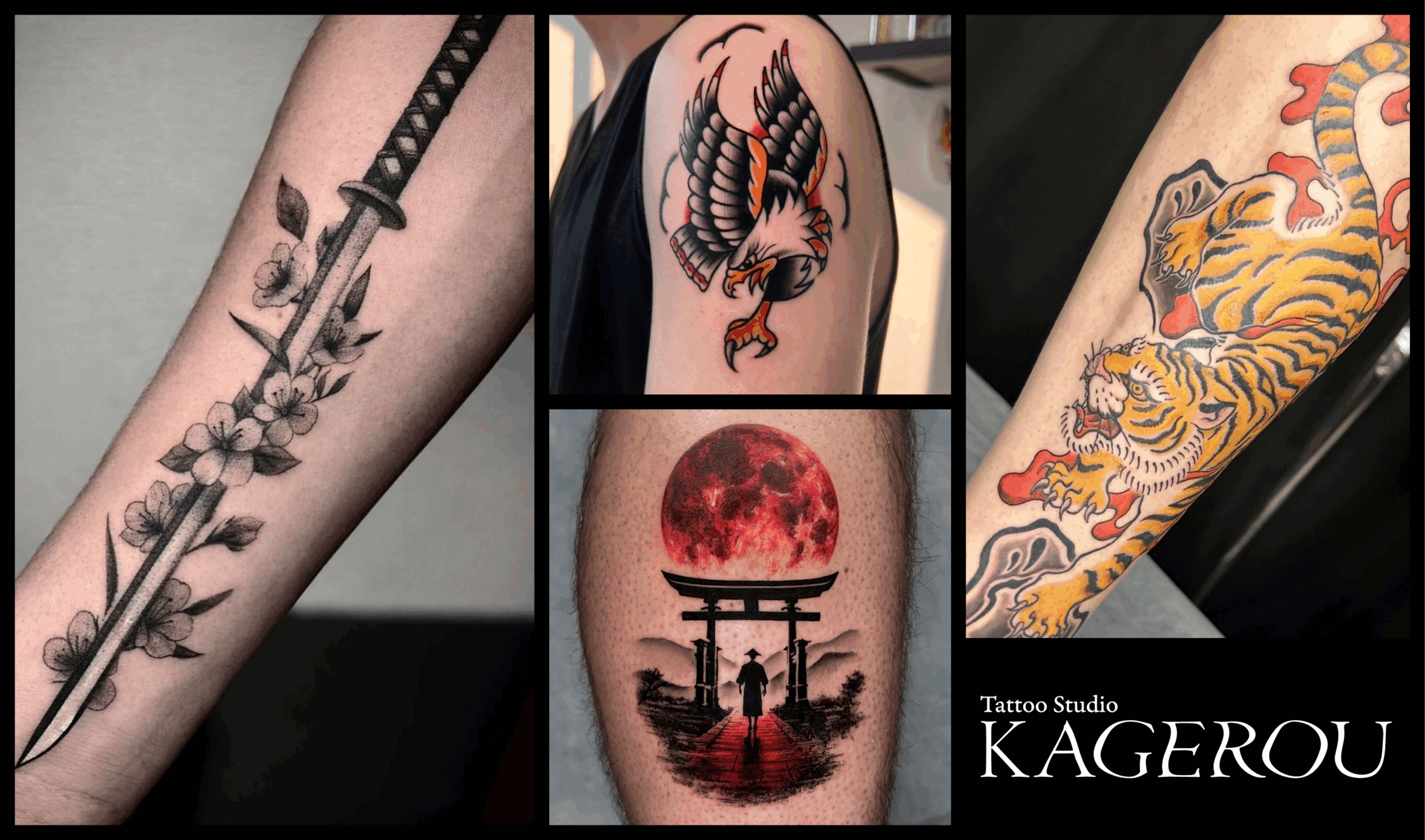 「KAGEROU」は、「蜉蝣」や「陽炎」を意味する言葉です。 美しさや刹那の魅力を象徴しているように、Tattoo Studio KAGEROUもその名の通り、時を経ても色褪せない、永遠の美しさを追求したタトゥーを提供しています。